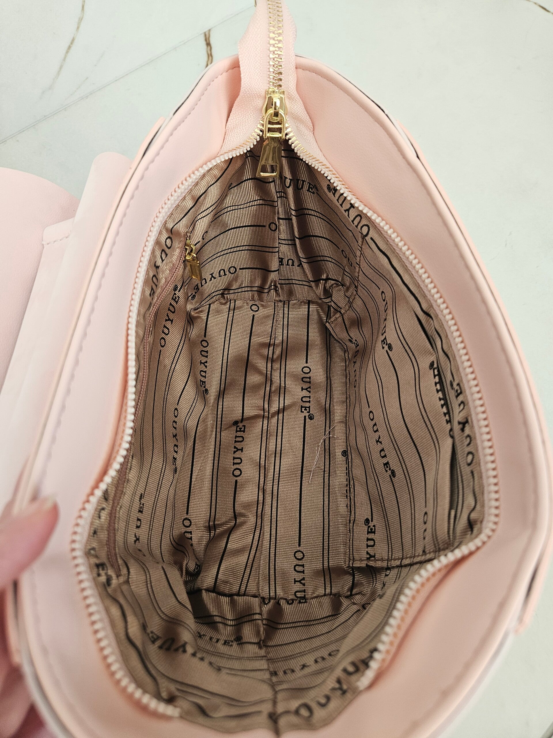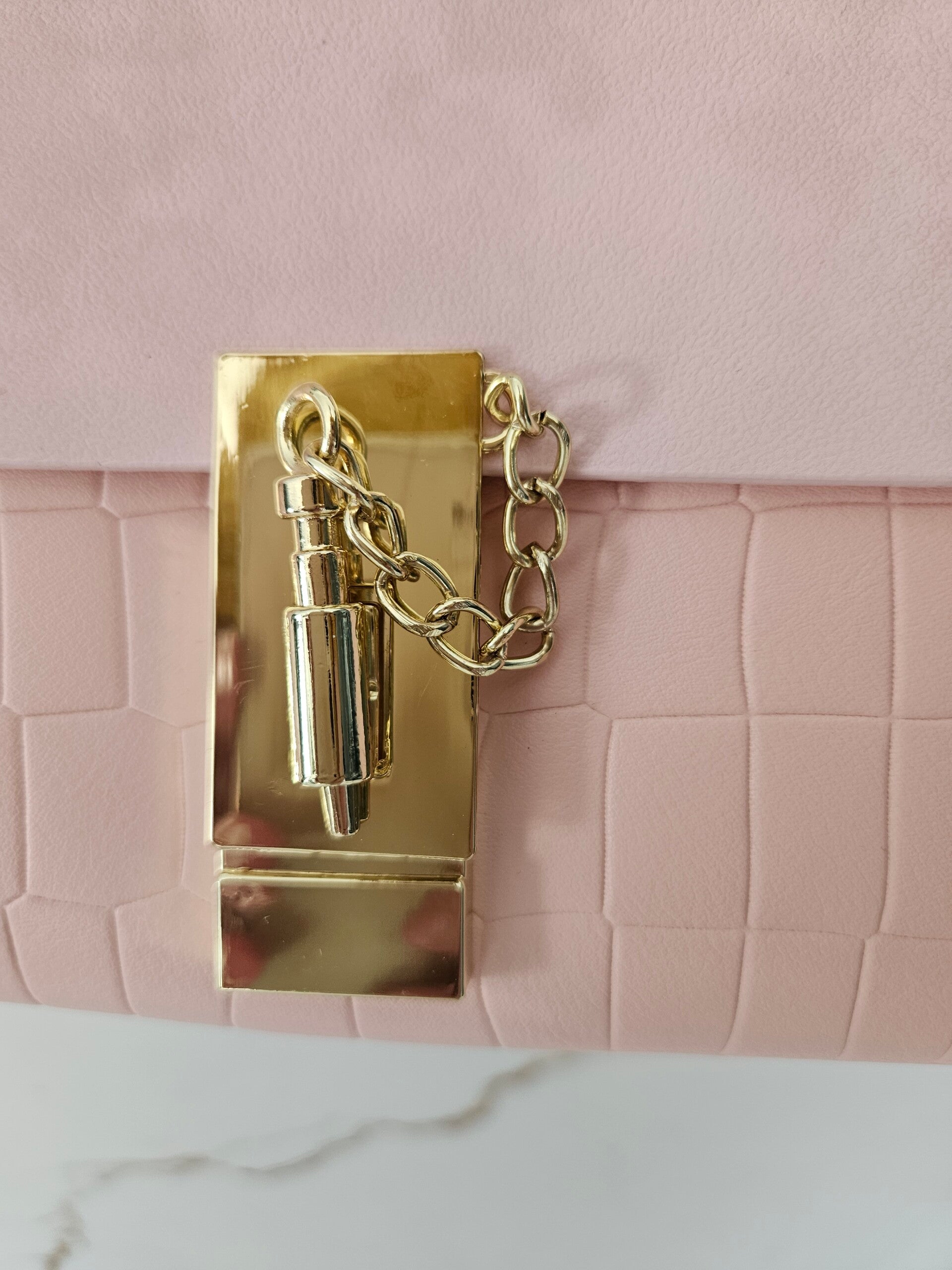 - Des pieds métalliques dorés sous le sac pour le protéger