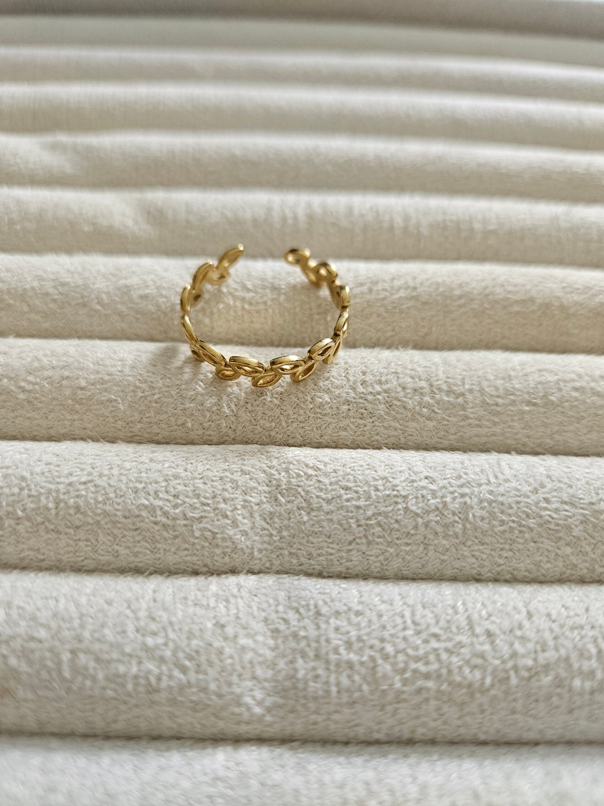 Bague motif feuilles en acier inoxydable